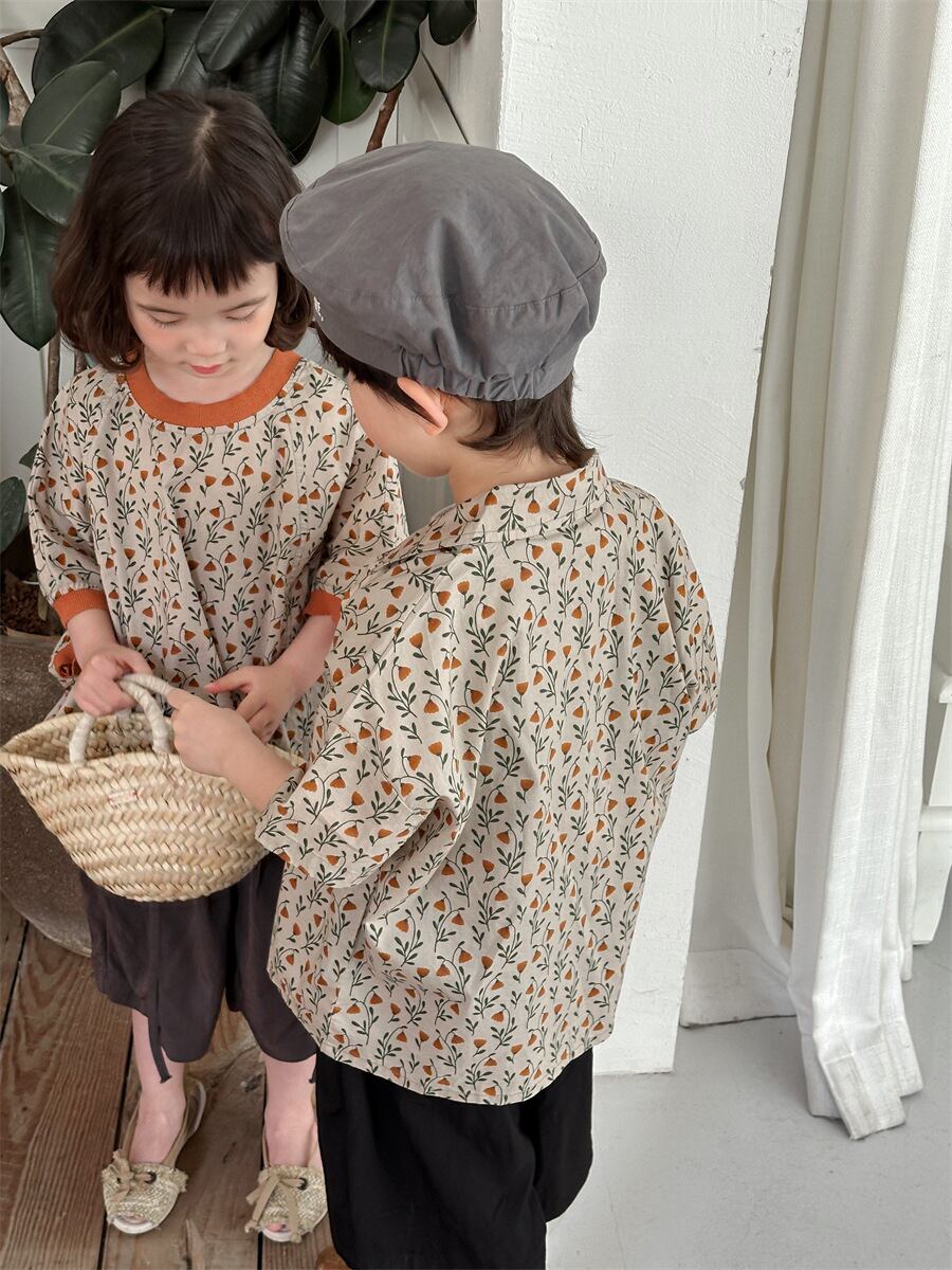 《取寄》 レトロ小花柄シャツとTシャツ (全2種) JIAY 2024夏 韓国子供服 リンガーTシャツ カットソー トップス 花柄 総柄