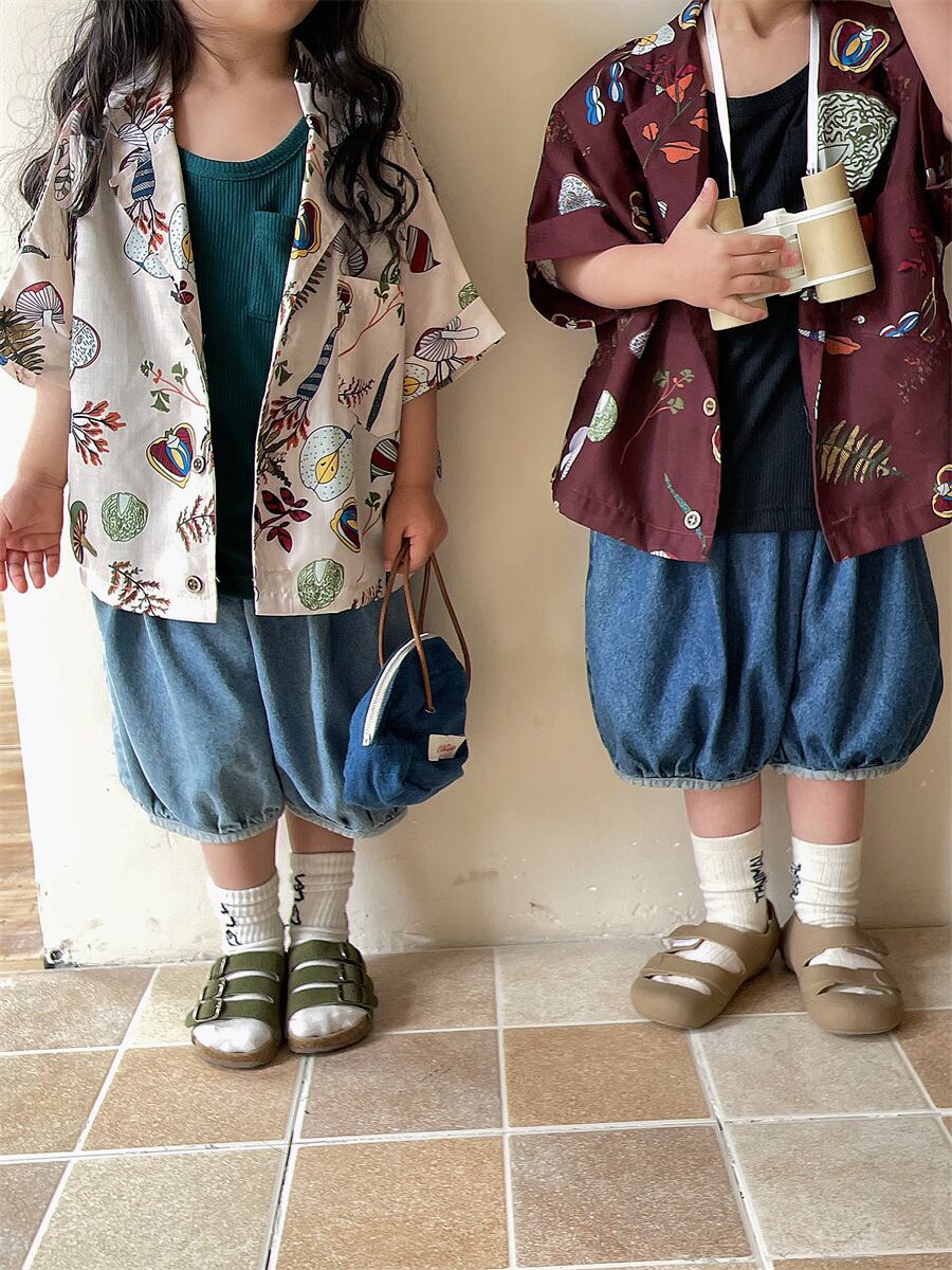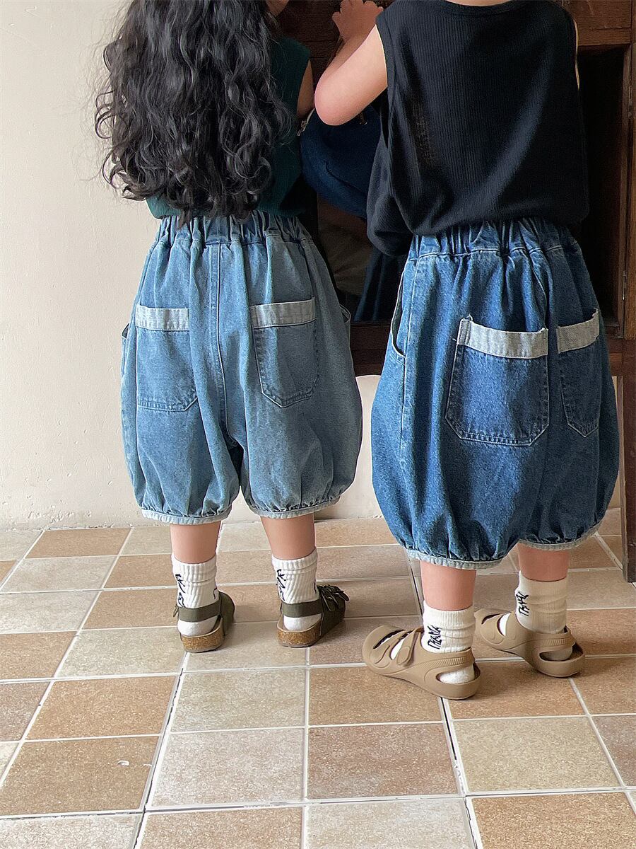 《取寄》 バイカラーデニムランタンパンツ (全2色) JIAY 2024夏 韓国子供服 サルエルパンツ ハーフパンツ 短パン ズボン デニム