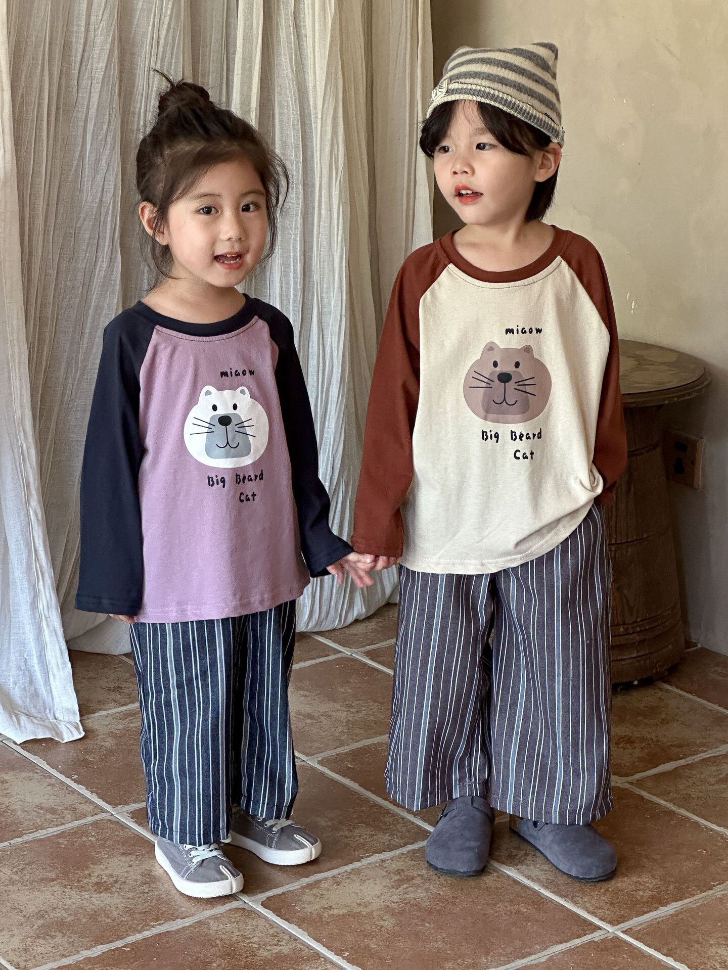 ・ストライプパンツ (ブラウン/ブラック) QQMM 2024秋 韓国子供服 ズボン ストレート ストライプ ボトムス(80~150cm) 《取寄》