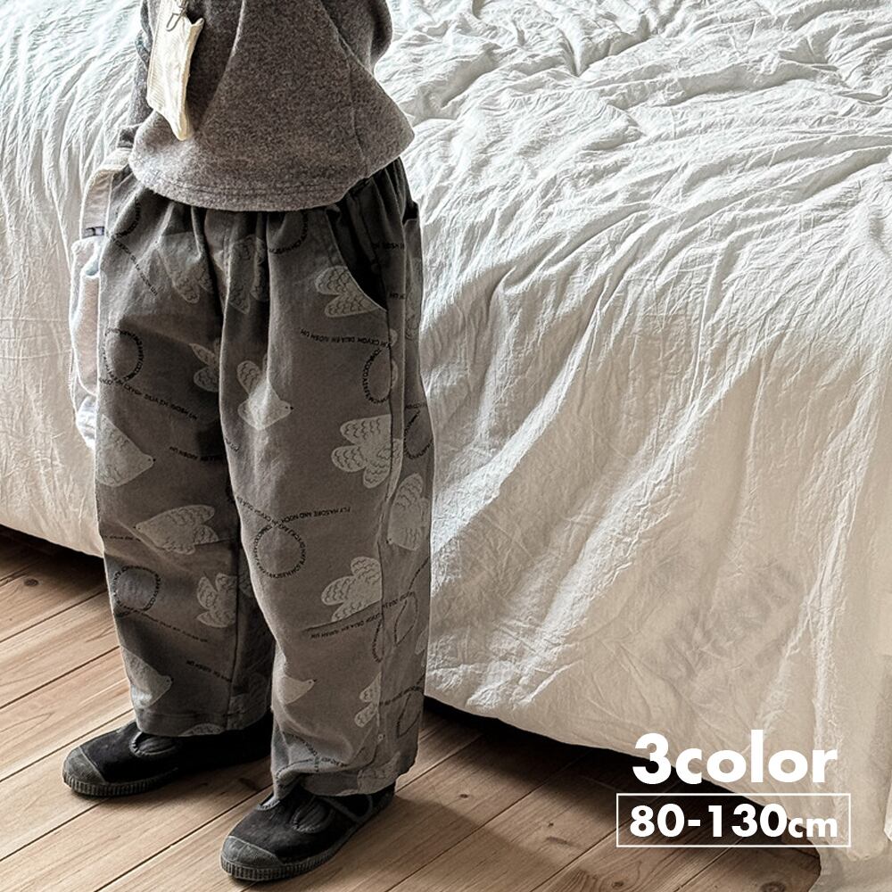 《取寄》 トリさん総柄パンツ (グレー/グリーン/ネイビー) ADBB 2024秋 韓国子供服 ボトムス パンツ 鳥 総柄 (80~130cm)