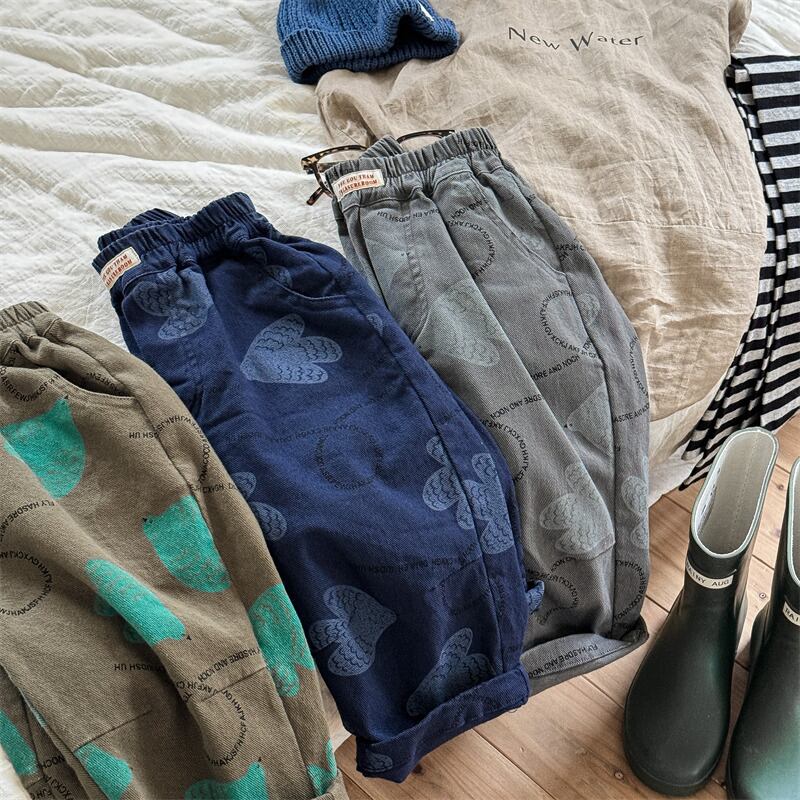 ・トリさん総柄パンツ (グレー/グリーン/ネイビー) ADBB 2024秋 韓国子供服 ボトムス パンツ 鳥 総柄 (80~130cm) 《取寄》