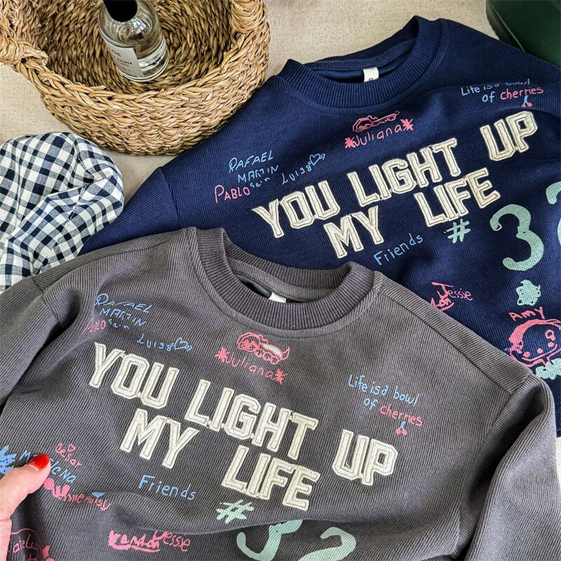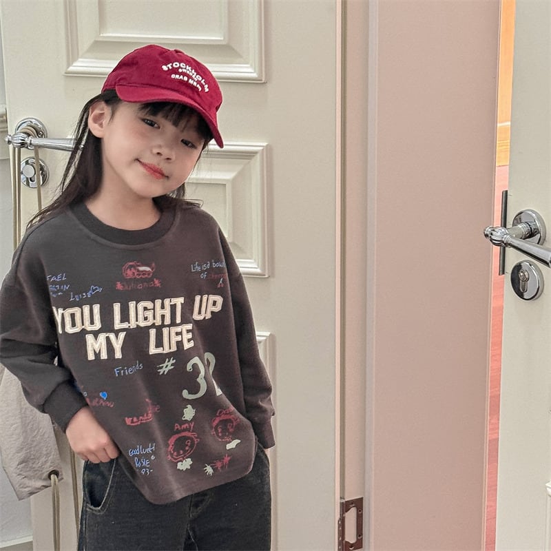 ・らくがきネオンスウェット (ネイビー/グレー) ADBB 2024秋 韓国子供服 トップス カットソー プルオーバー ロンT トレーナー(80~130cm)《取寄》