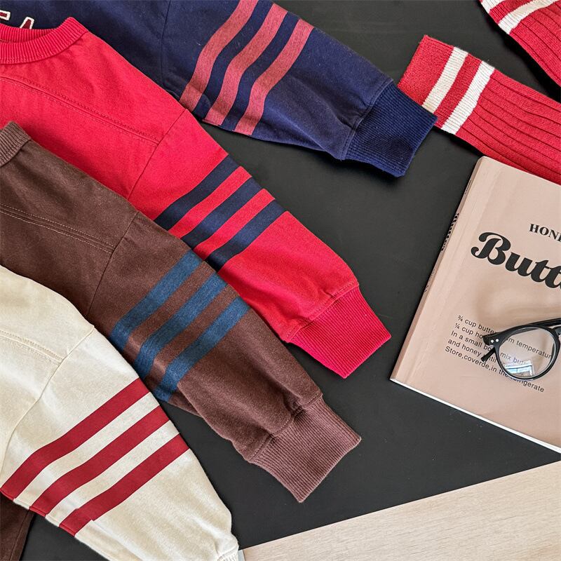 《取寄》 カラーフットボールTシャツ (アイボリー/レッド/ネイビー/ブラウン) ADBB 2024秋 韓国子供服 Tシャツ カットソー ロンT トップス (80~130cm)