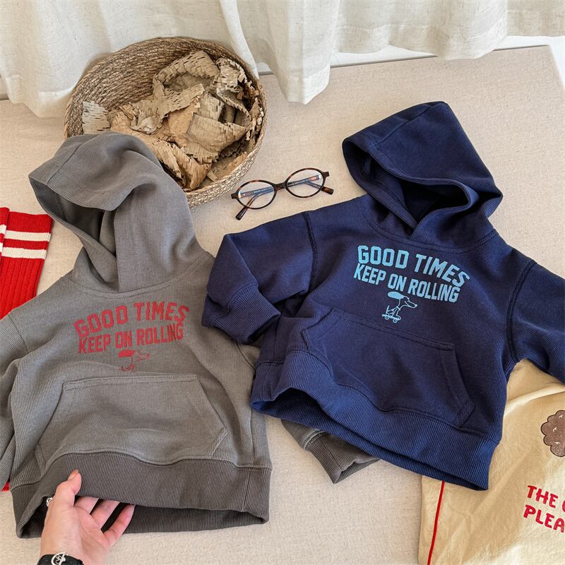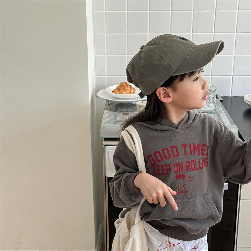 ・ドッグプリントフーディー (ネイビー/グレー) ADBB 2024秋 韓国子供服 トップス スウェット パーカー 長袖 フード (80~130cm) 《取寄》