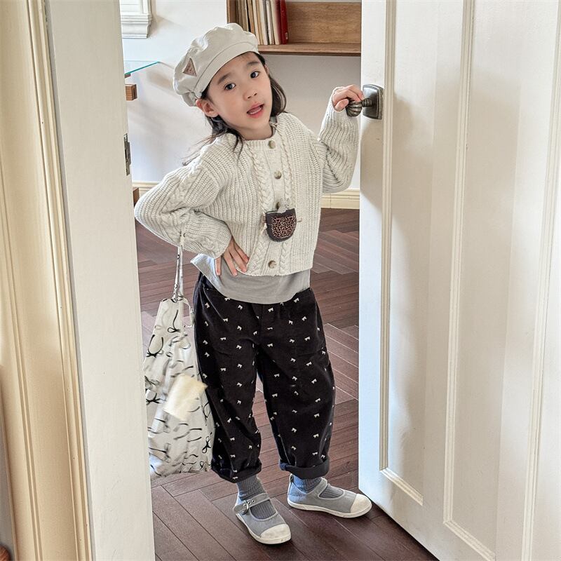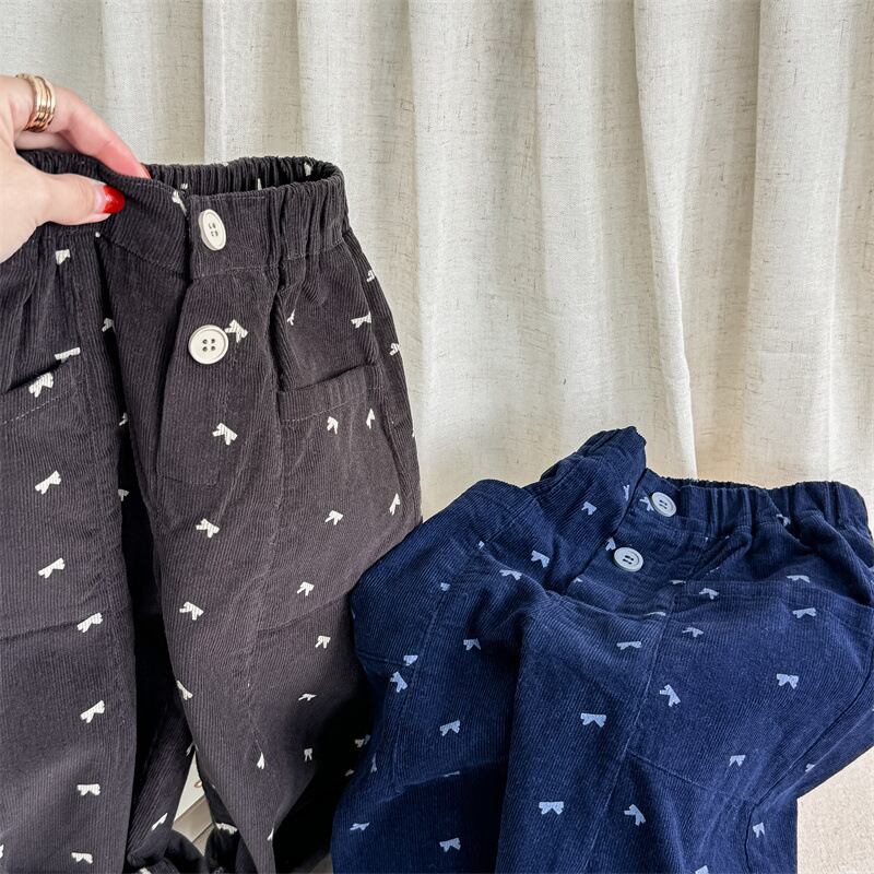 《取寄》 リボン柄コーデュロイパンツ (チャコール/ネイビー) ADBB 2024秋 韓国子供服 レギンス レギパン スパッツ ボトムス ズボン (80~130cm)