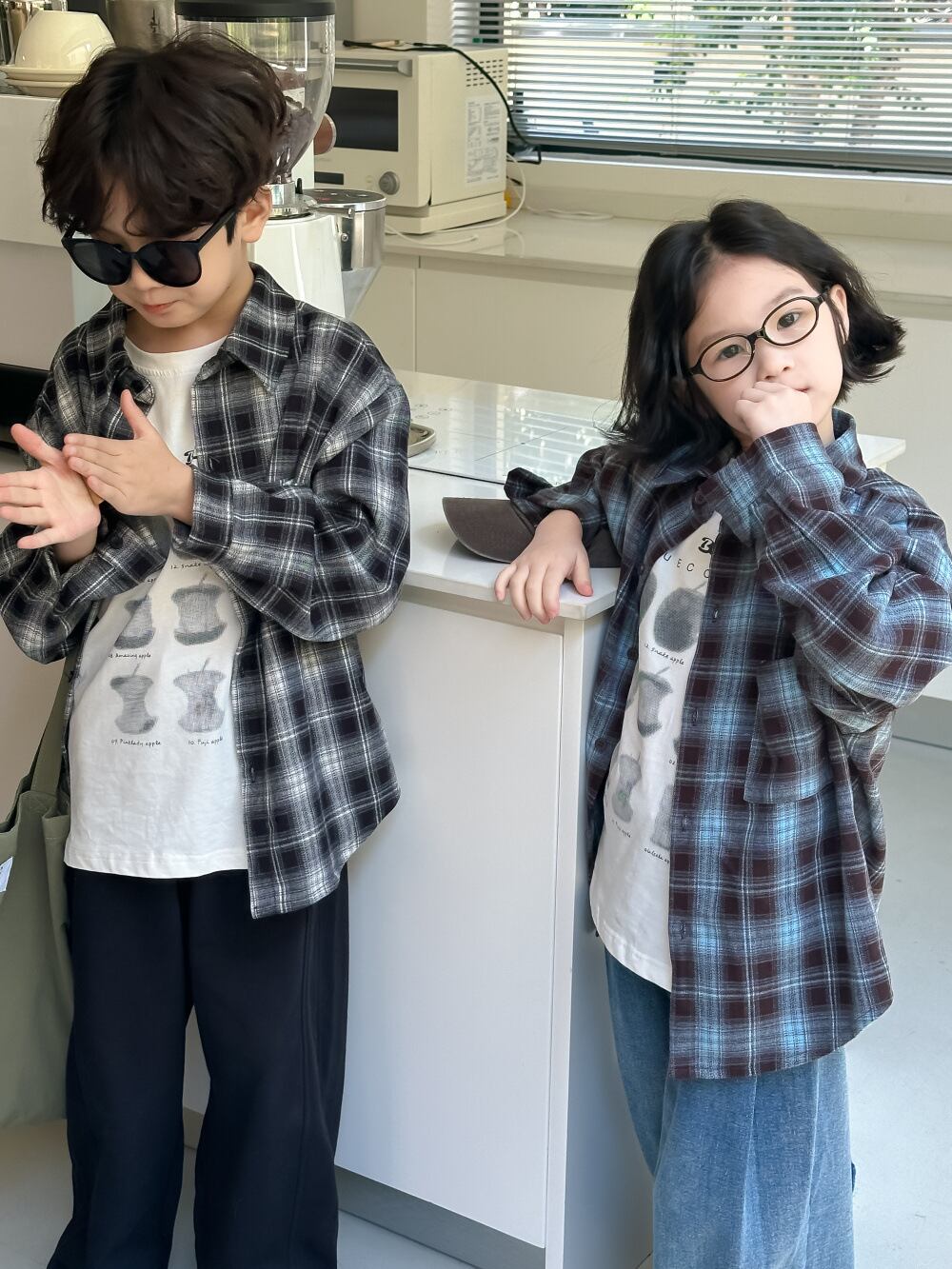 《取寄》 グラデーションチェックシャツ (ブラック/ブルー) KMAI 2024秋 韓国子供服 トップス ネルシャツ シャツ 羽織り (90~150cm)