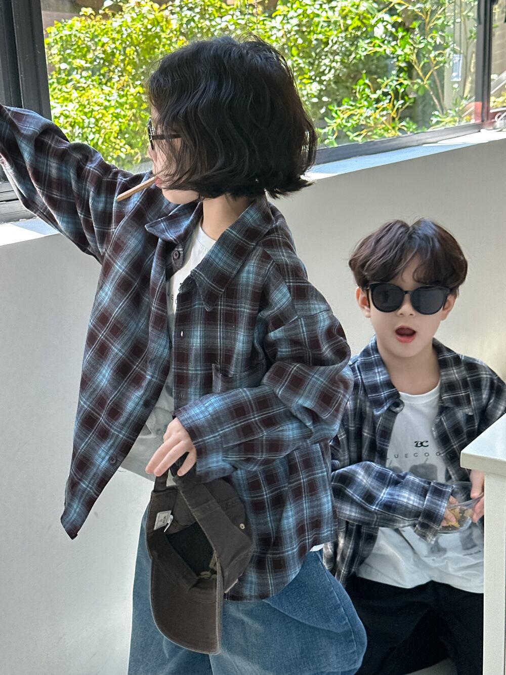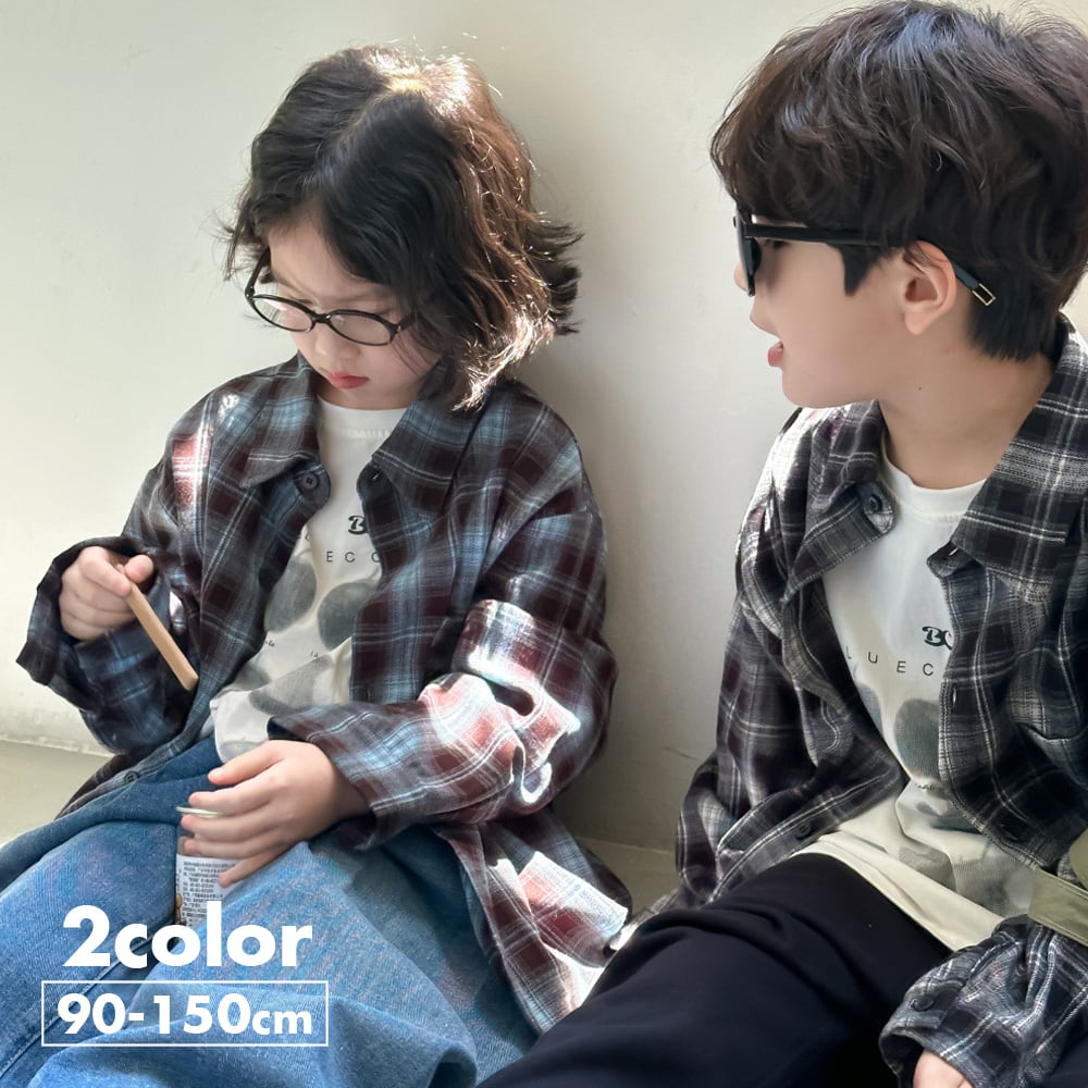 ・グラデーションチェックシャツ (ブルー) KMAI 2024秋 韓国子供服 トップス ネルシャツ シャツ 羽織り (90~150cm)《取寄》