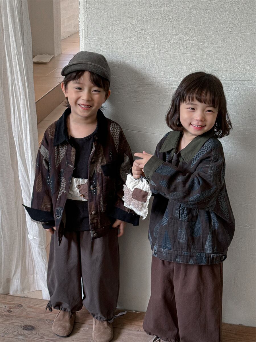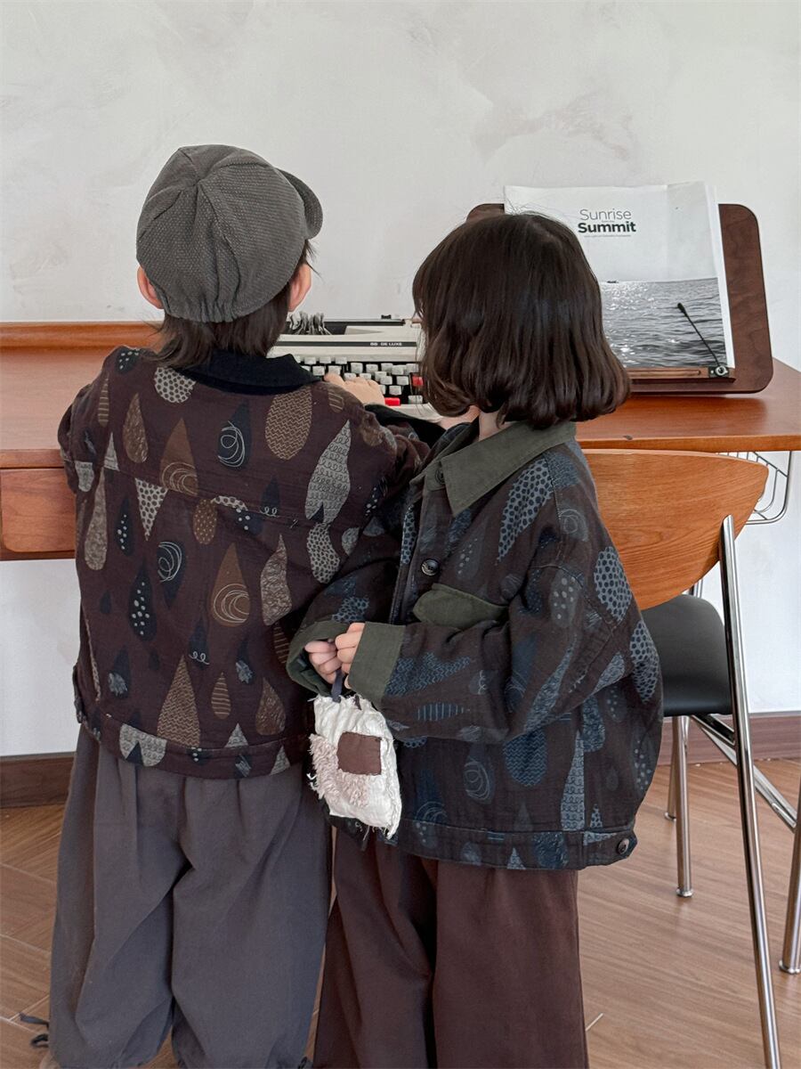 ・しずく柄シャツ (ブラウン/カーキ) JIAY 2024秋 韓国子供服 シャツ トップス 羽織り 柄シャツ 秋色 (80~140cm) 《取寄》
