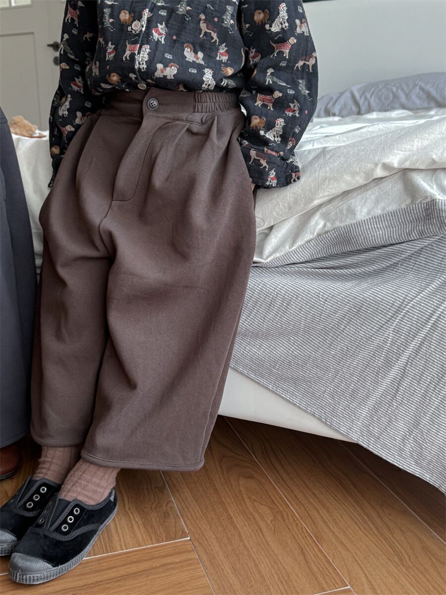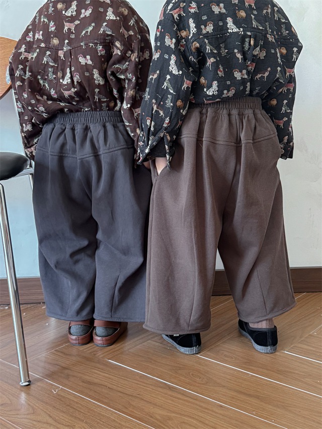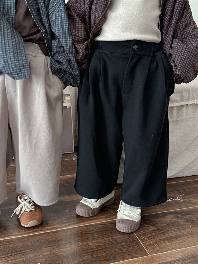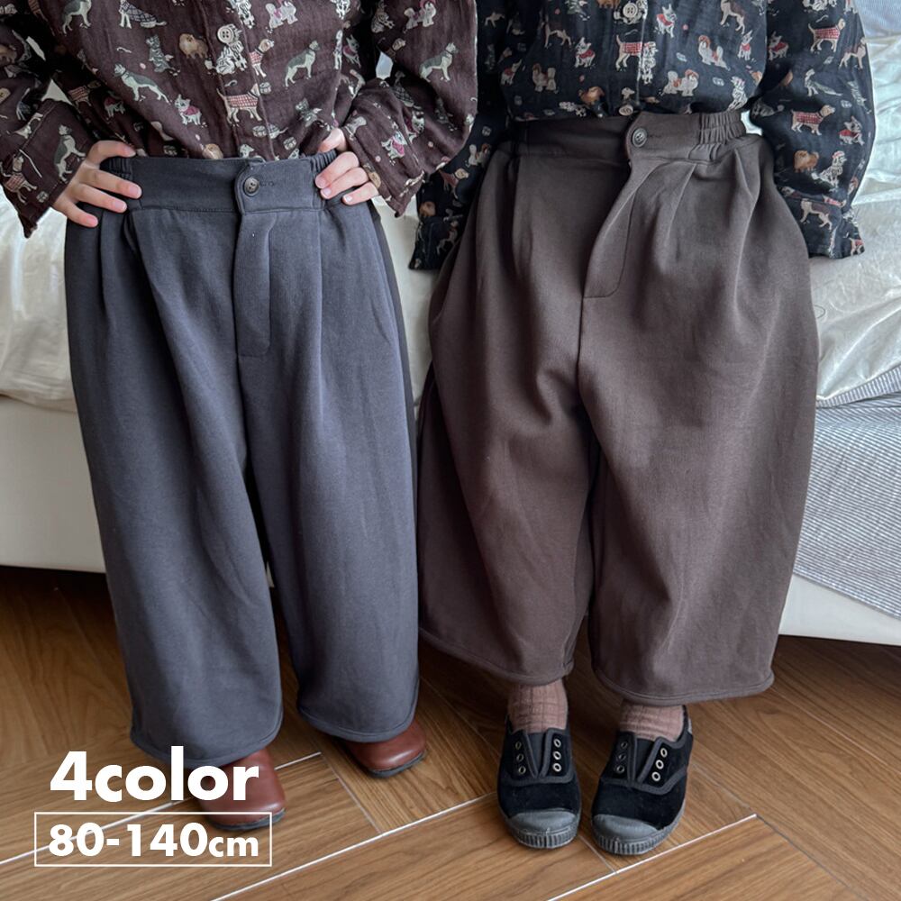 ・タックルーズストレートパンツ (アイボリー/グレー/ブラウン/ブラック) JIAY 2024秋 韓国子供服 オーバーサイズ パンツ ズボン シンプル ビッグシルエット (80~140cm)《取寄》