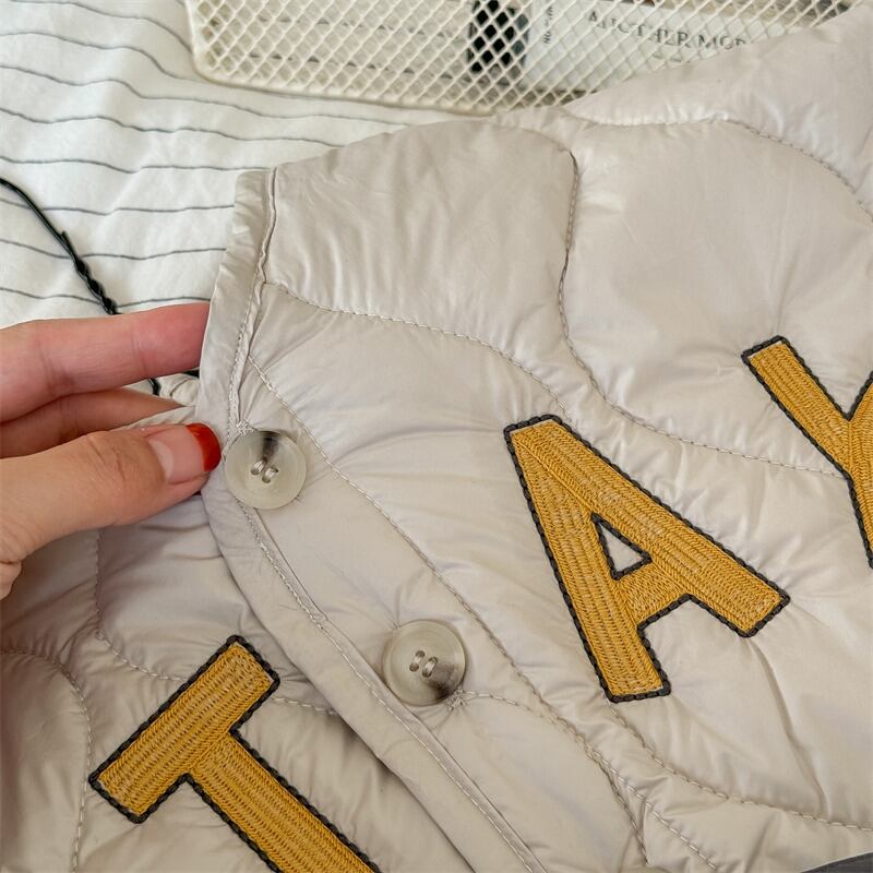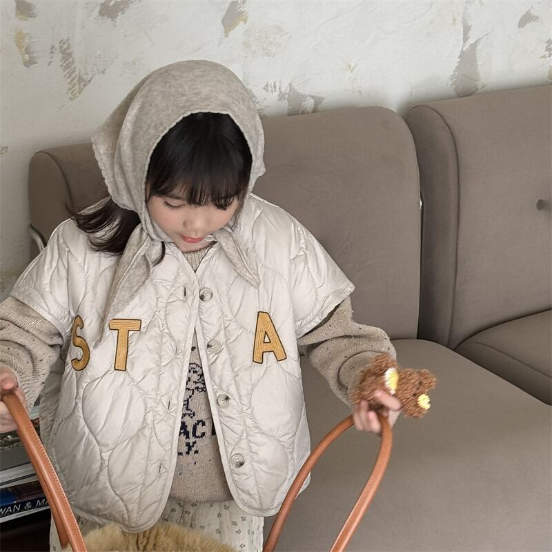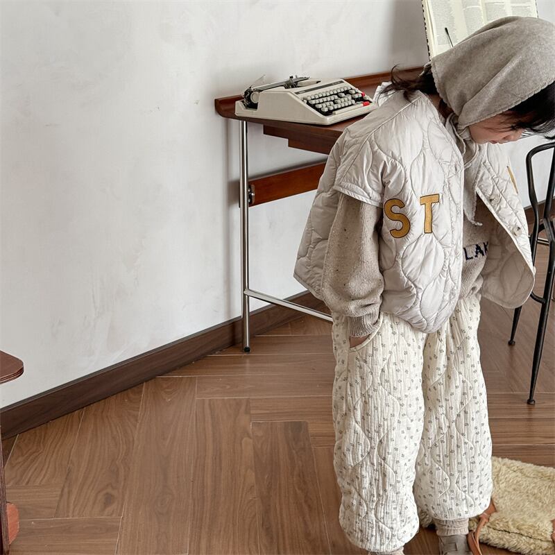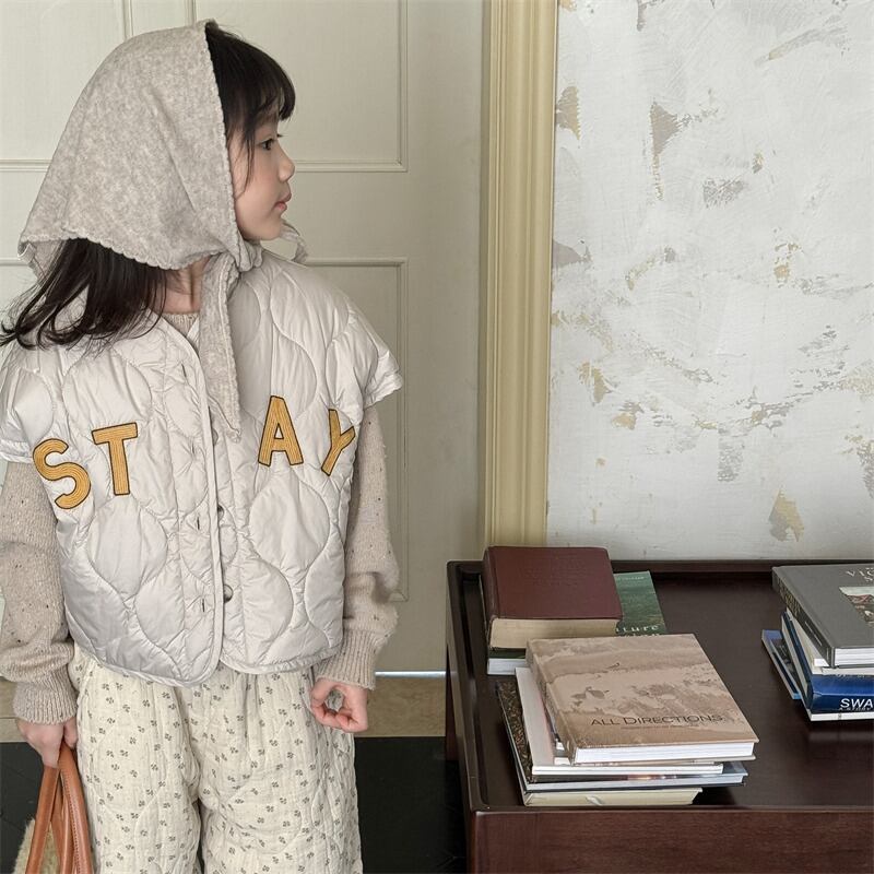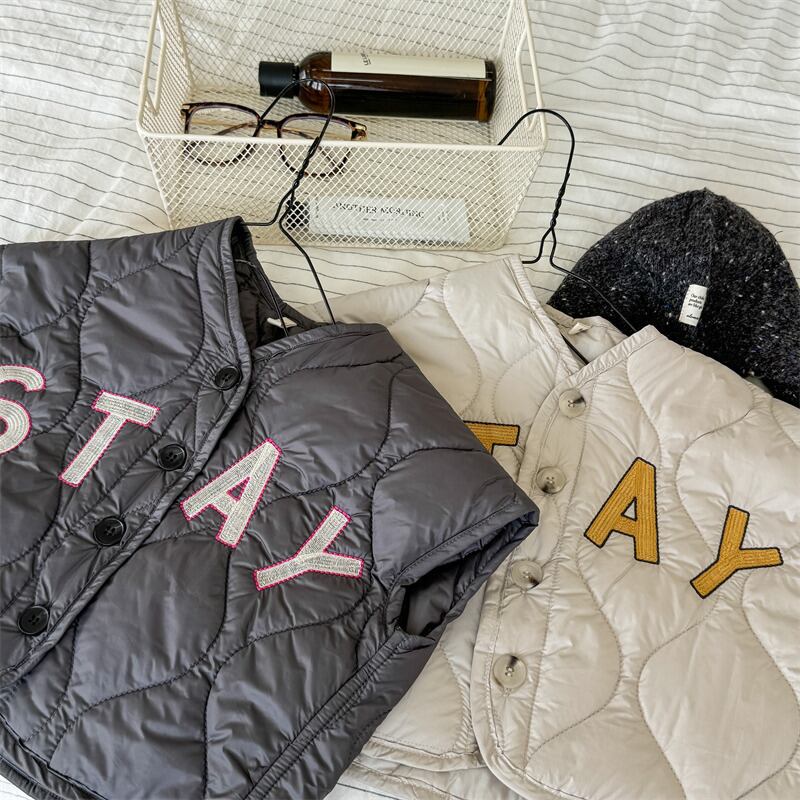 ・ 《取寄》 STAYロゴキルティングベスト (アイボリー/グレー) ADBB 2024冬 韓国子供服 アウター ベスト キルトベスト 軽量 重ね着 ベビー服(80~130cm)