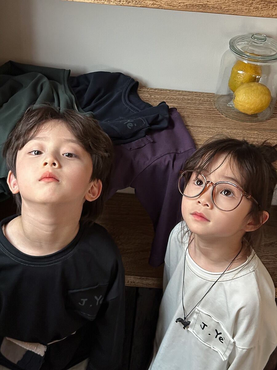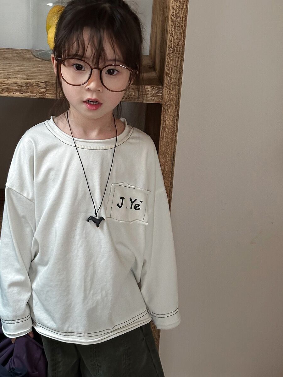 《取寄》 カットオフロゴペーストTシャツ (ホワイト/パープル/ネイビー/ブラック/グリーン) JIAY 2025春 韓国子供服 Tシャツ カットソー トップス ロンT 長袖 (80~140cm)