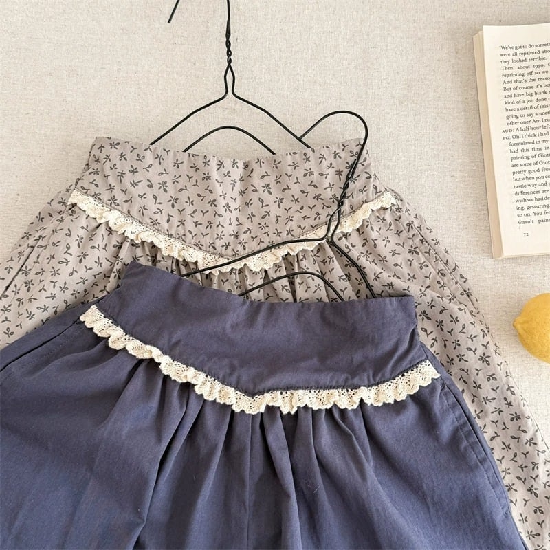 《取寄》 ポイントレースフレアパンツ (ネイビー/花柄) ADBB 2025春 韓国子供服 ズボン ボトムス パンツ ワイドパンツ ガウチョパンツ 小花柄 女の子 (80~130cm)