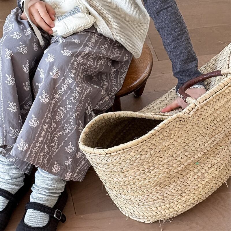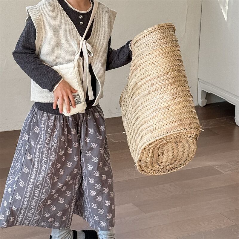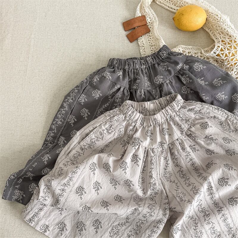 《取寄》 ボタニカル柄フレアパンツ (グレーホワイト/チャコール) ADBB 2025春 韓国子供服 ズボン ボトムス パンツ ワイドパンツ ガウチョパンツ 花柄 クラシック (80~130cm)
