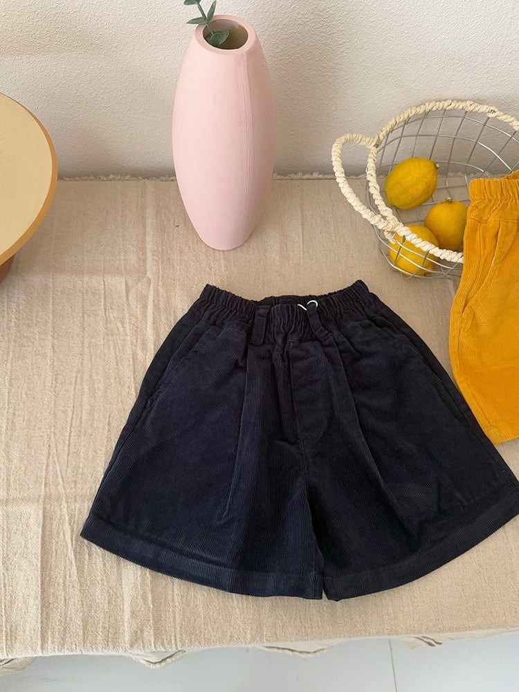 《取寄》 コーデュロイハーフパンツ (イエロー/ネイビー) BOBI 2025春 韓国子供服 ズボン パンツ ショートパンツ 短パン タックパンツ (90~150cm)
