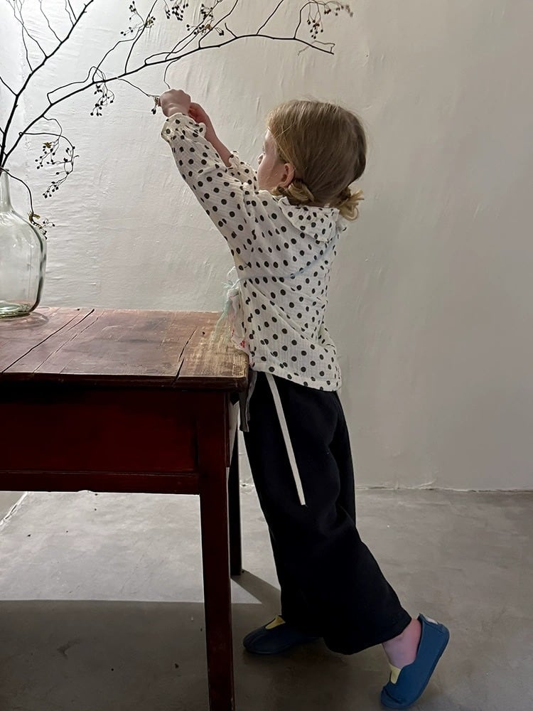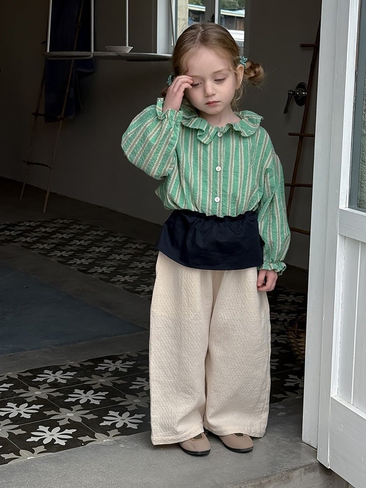 《取寄》 ミニエプロン付きグリッドワイドパンツ (アイボリー/ネイビー) BOBI 2025春 韓国子供服 ズボン パンツ ボトムス カフェパンツ ワッフル バギーパンツ ストレートパンツ (90~150cm)