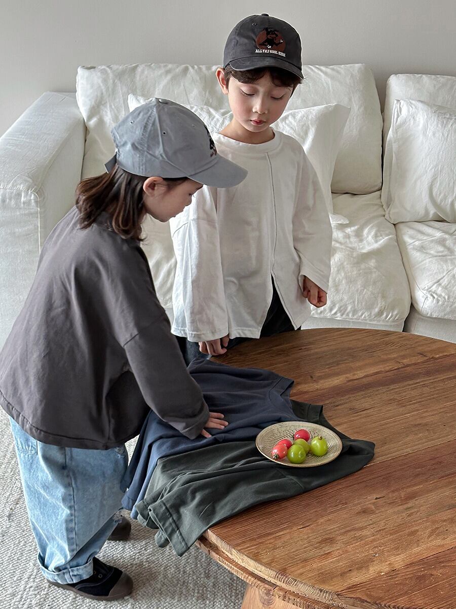 《取寄》 センタースリットTシャツ (ホワイト/グレー/グリーン/ネイビー) JIAY 2025春 韓国子供服 トップス Tシャツ カットソー ロンT 長袖 ドロップショルダー (80~140cm)