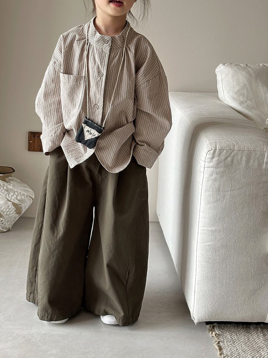 《取寄》 タック入りオーバーワイドパンツ (ベージュ/グレー/カーキ) JIAY 2025春 韓国子供服 パンツ ズボン ボトムス ガウチョパンツ フレアパンツ バギーパンツ (80~140cm)