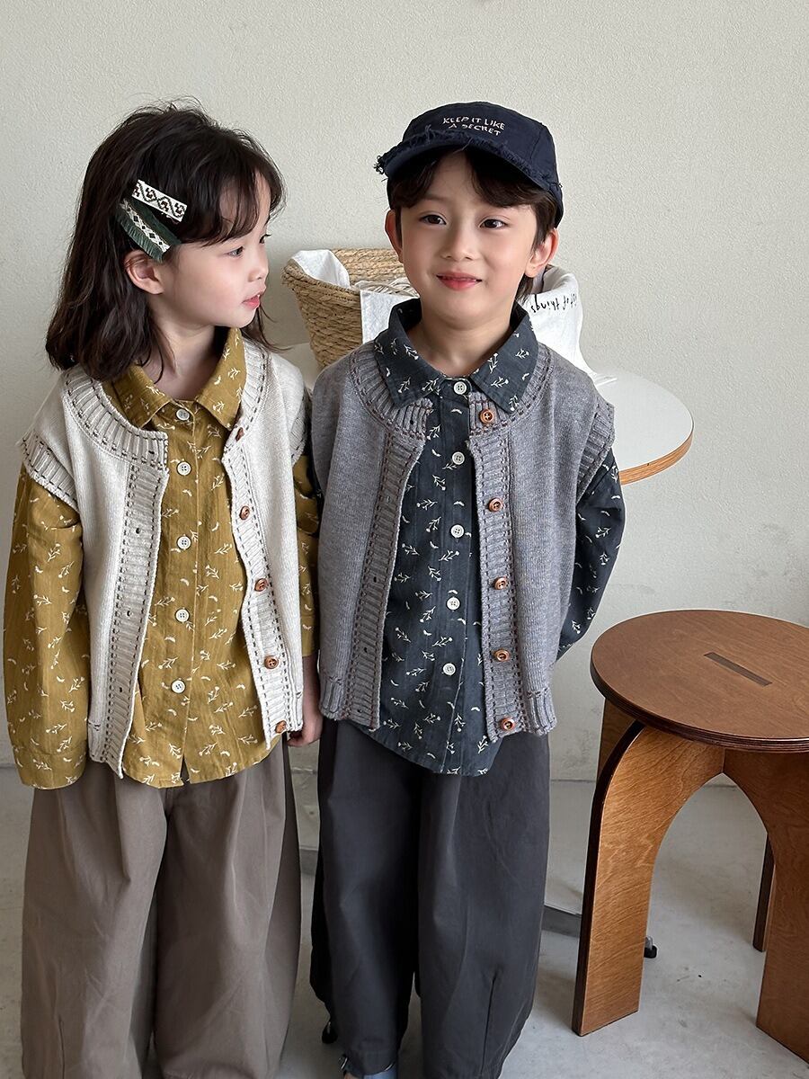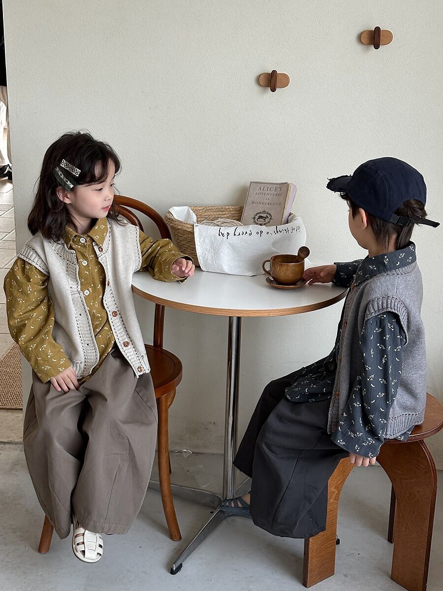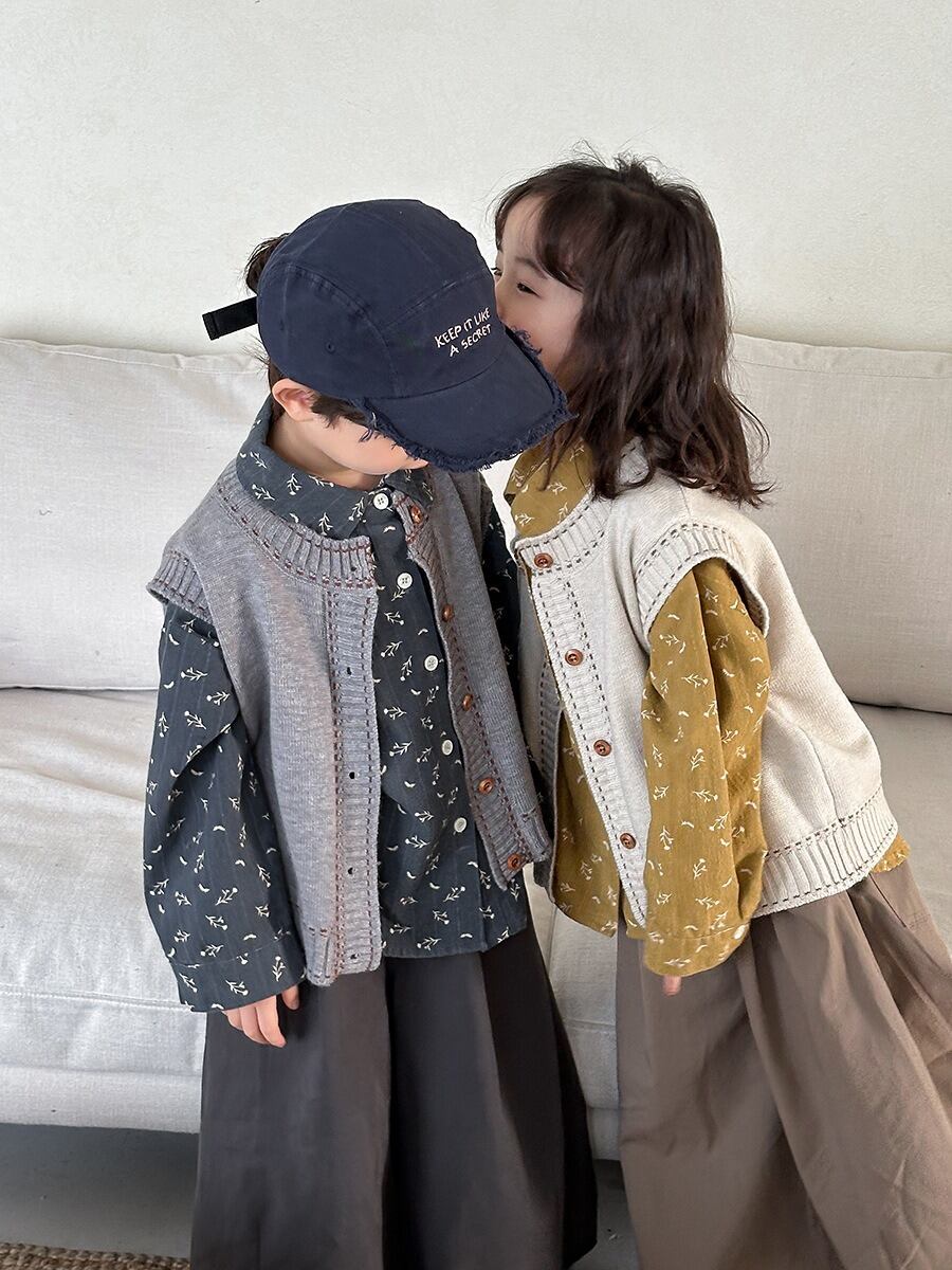 《取寄》 ボタンニットベスト (アイボリー/グレー) JIAY 2025春 韓国子供服 トップス アウター カーディガン 羽織り カーディガン 上着 重ね着 (80~140cm)
