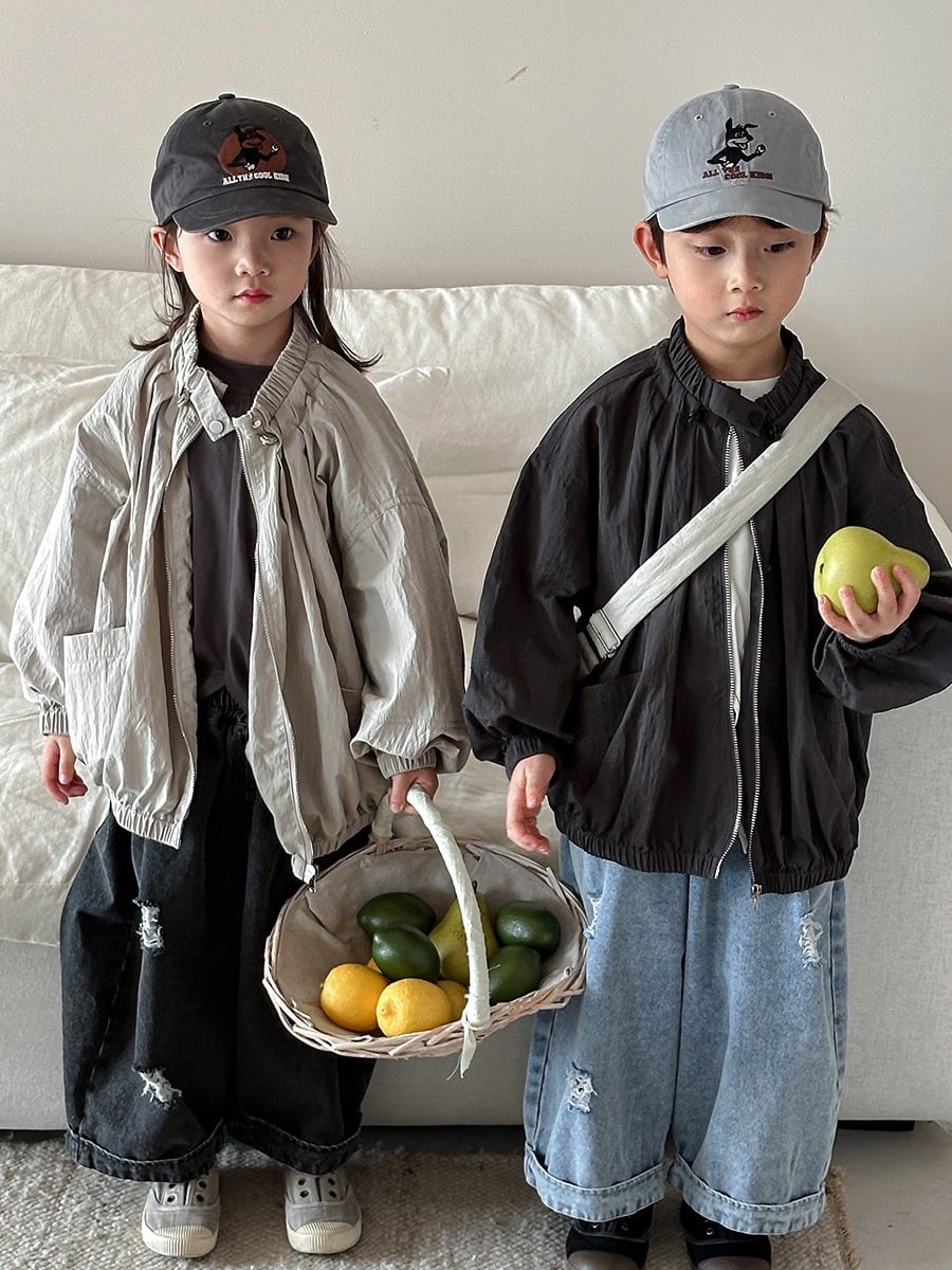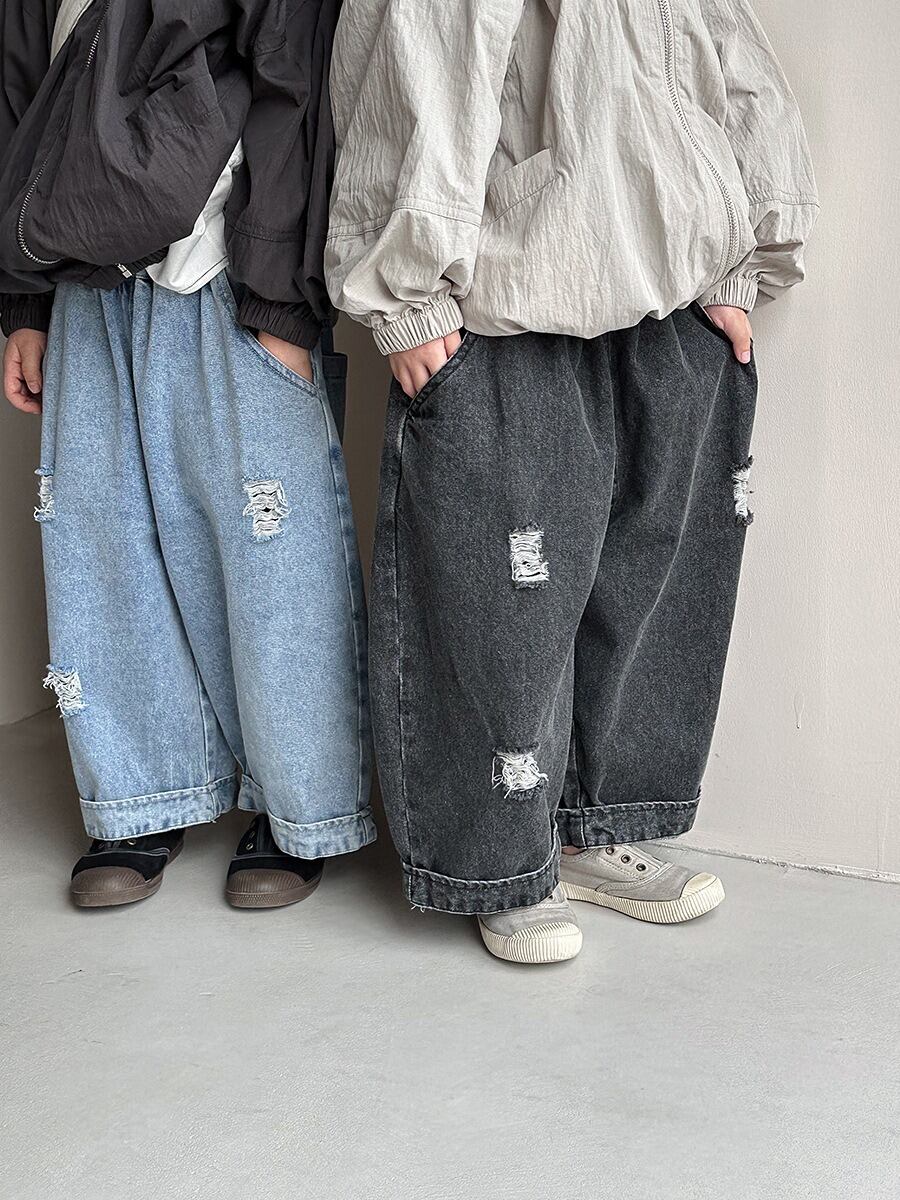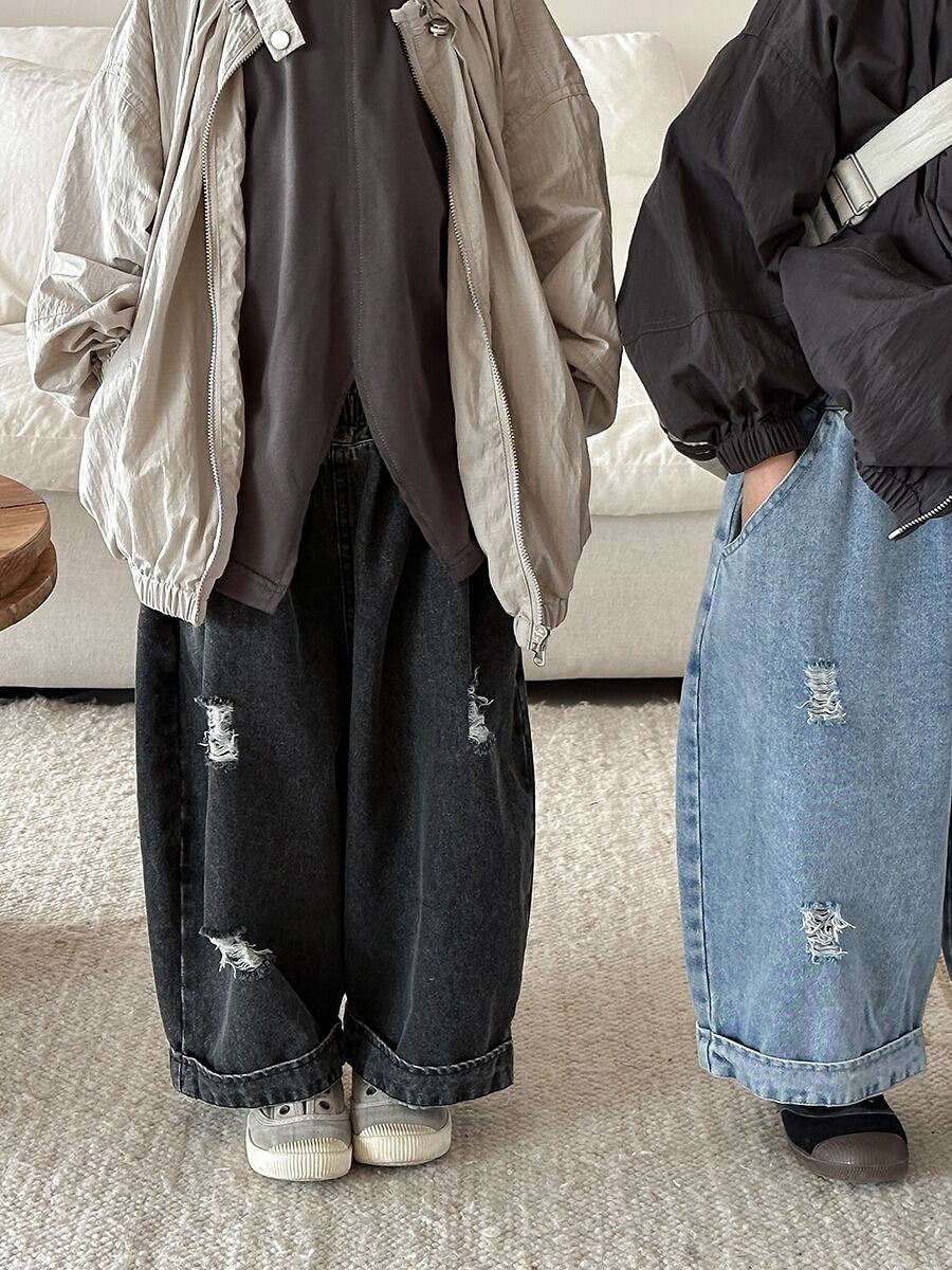 《取寄》 クラッシュデニムパンツ (ブルー/ブラック) JIAY 2025春 韓国子供服 パンツ ジーンズ ジーパン ダメージデニム ワイドデニム (80~140cm)