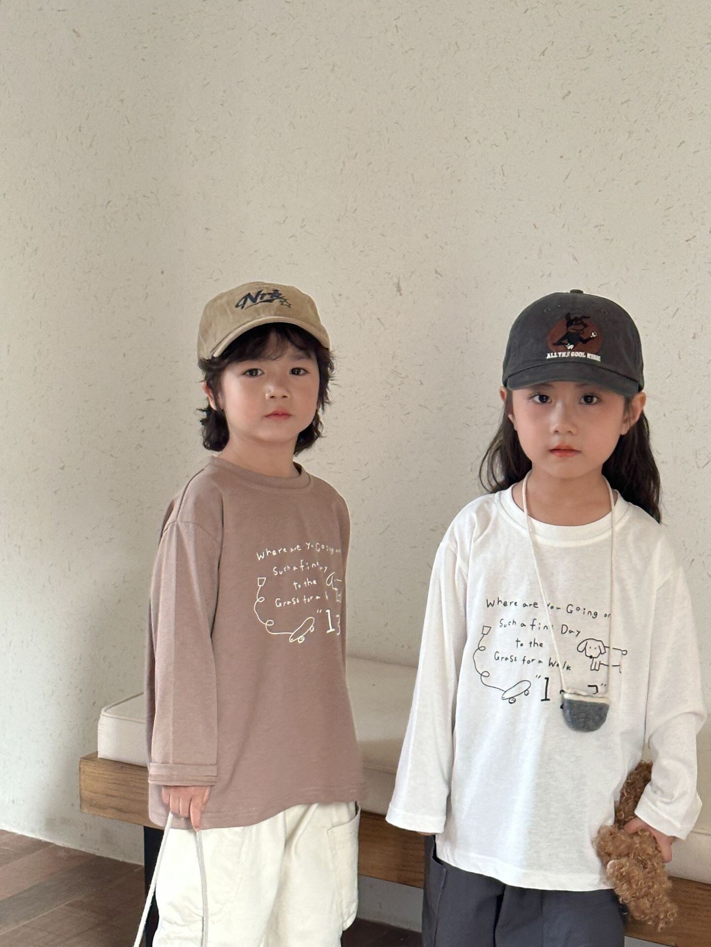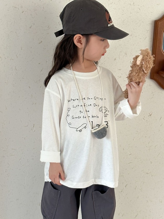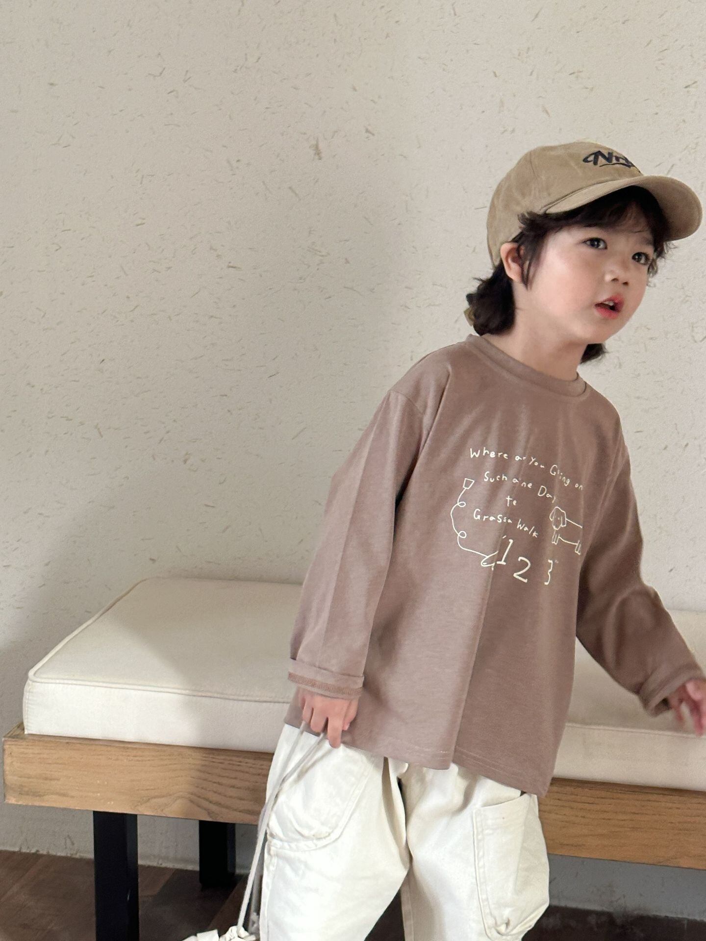 《取寄》 ワンちゃんプリントTシャツ (ホワイト/モカ) QQMM 2025春 韓国子供服 トップス Tシャツ カットソー 犬 長袖 ロンT らくがき(80~150cm)