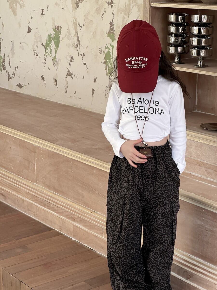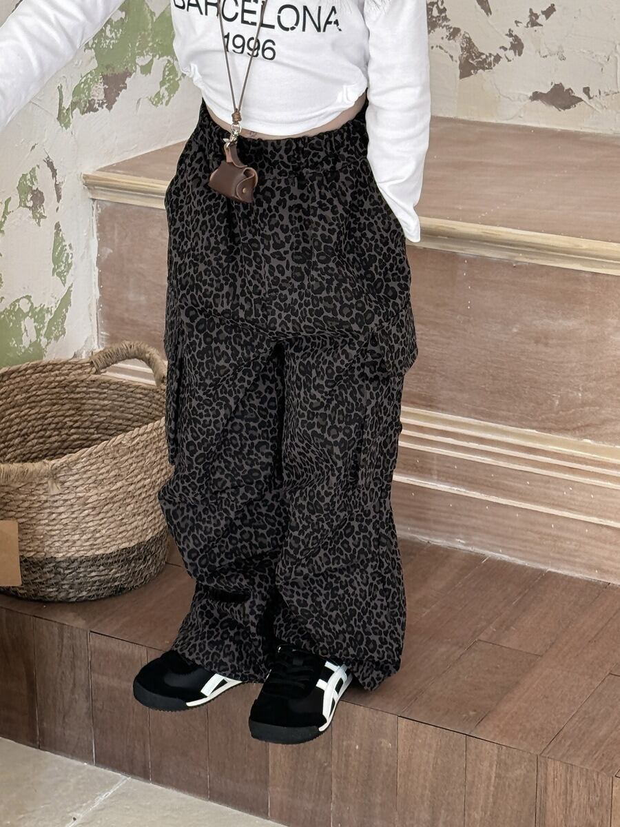 《取寄》 ヒョウ柄カーゴパンツ (ヒョウ柄) QBSH 2025春 韓国子供服 ズボン パンツ ミリタリー パラシュートパンツ カーゴ アニマル柄 (90~150cm)